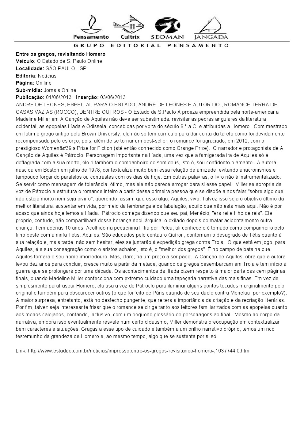 06/2013 - O Estado de S.Paulo Online |