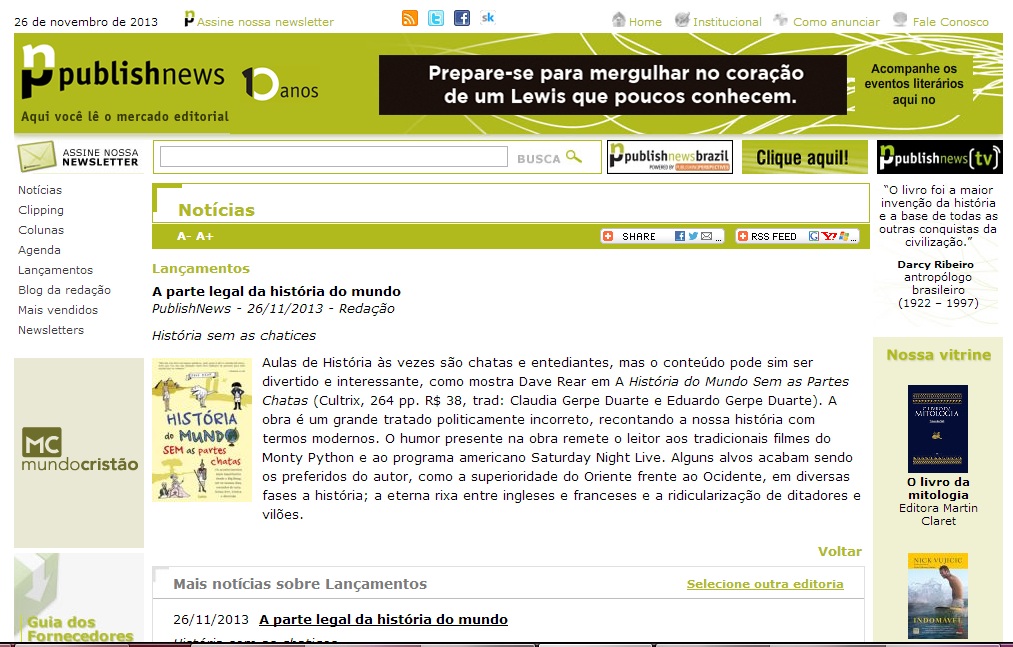 | 11/2013 - Extra/Globo.com - RJ |