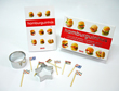 Hamburguinhos vem em um box que contém: 1 livro com receitas deliciosas de mini-hambúrgueres, 2 cortadores para os pãezinhos e a carne (um redondo e outro em formato de estrela) e 20 palitos com bandeirinhas para ajudar a montar e decorar os sanduíches, deixando-os muito mais estilosos.